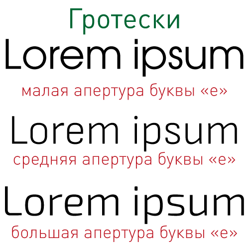 Так же нужно следить, чтобы апертура знаков шрифта была большой или средней. В данном случае требование основано даже не на удобстве чтения, а на том, что литеры с малой апертурой будут неизбежно искажены из-за растискивания краски. Например литера "С" будет неотличима от литеры "О".